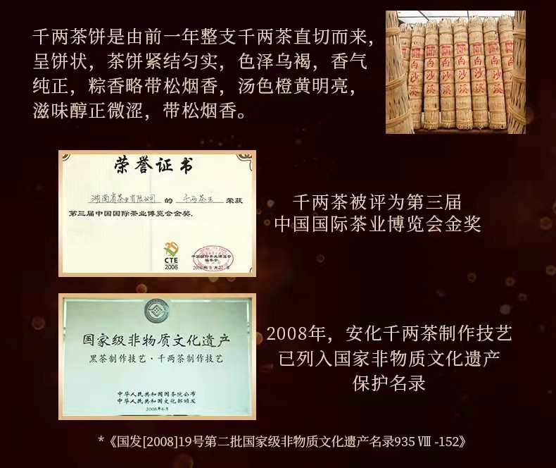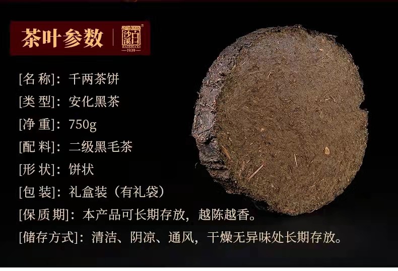 湖南安化黑茶正品白沙溪正宗干兩茶花卷茶餅禮盒干兩茶餅750g