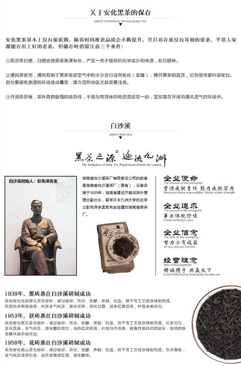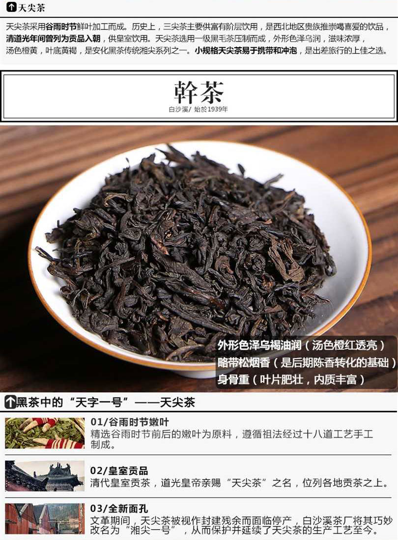 • 湖南安化黑茶正品白沙溪芽料散茶直泡天尖茶160g