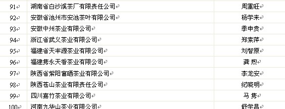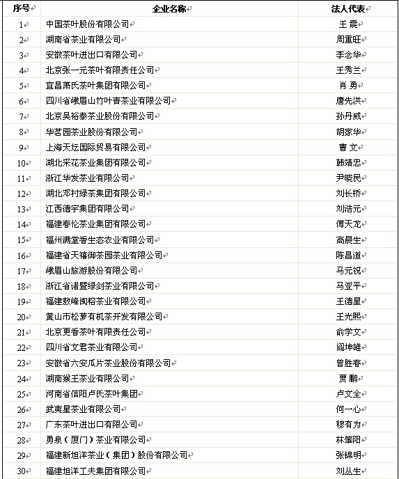 2011年中國茶葉行業(yè)百強企業(yè)公示