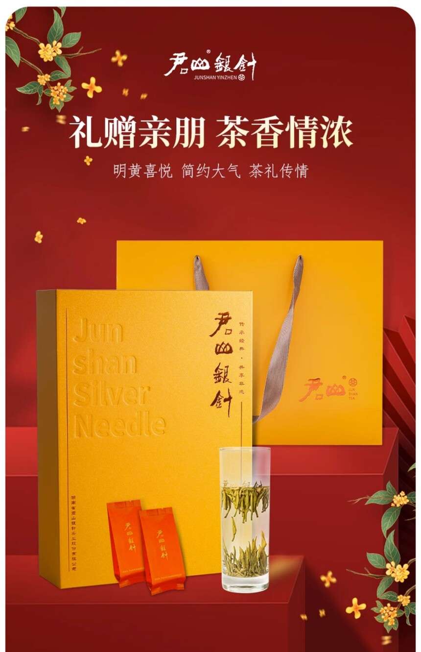 湖南特產(chǎn)岳陽君山島茶葉君山銀針555明前新茶黃茶禮盒裝100g