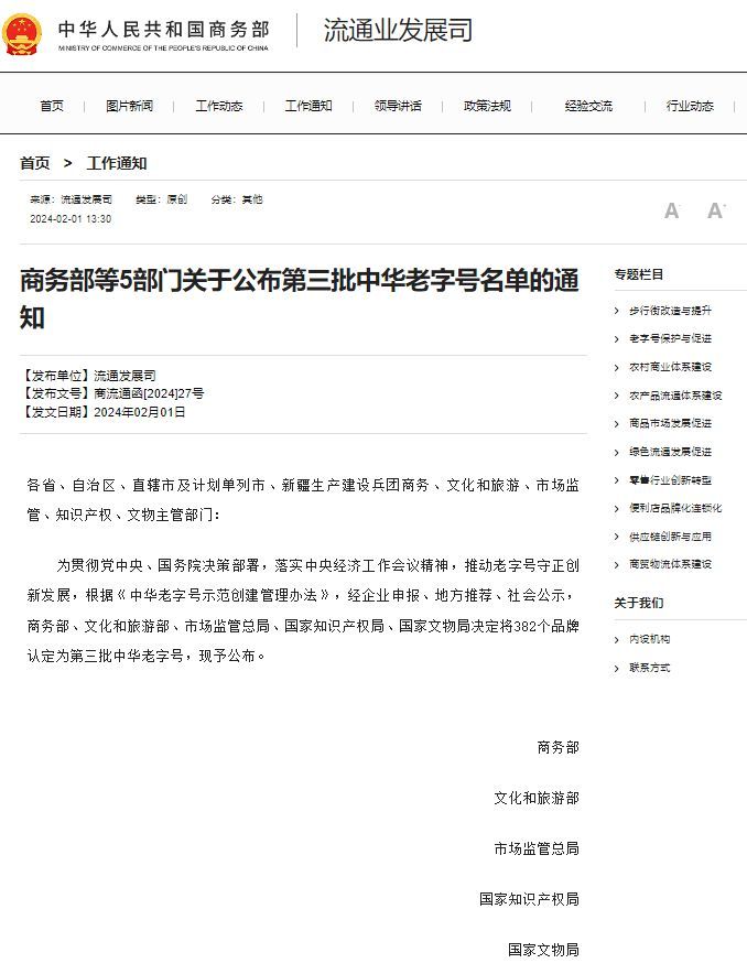 2月1日,國家商務(wù)部發(fā)布了新一批中華老字號認(rèn)定通知,全國382個品牌被認(rèn)定為第三批中華老字號。集團益陽茶廠品牌“湘益”被認(rèn)定為“中華老字號”,是我省獲此殊榮的黑茶品牌。