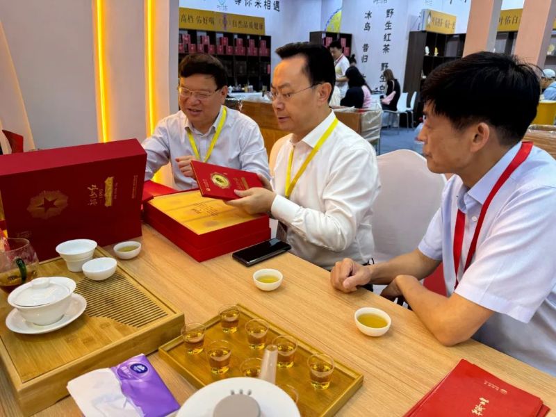 展會(huì)期間,集團(tuán)公司各單位主要負(fù)責(zé)人均到現(xiàn)場(chǎng)進(jìn)行宣傳推介和營(yíng)銷推廣,白沙溪新品“大師莊園·甲辰茯茶”、“大師莊園·甲辰天尖餅”,湘益新品“中華老字號(hào)紀(jì)念茯茶”、“龘龘茯”等重磅亮相,得到行業(yè)專家及同行的一致好評(píng);湘茶高科國(guó)家科技進(jìn)步二等獎(jiǎng)轉(zhuǎn)換產(chǎn)品“熊貓大叔生命科技小分子茶”以其降脂減肥、解酒護(hù)肝、平衡糖脂代謝等獨(dú)特的品飲功效成為展區(qū)一大亮點(diǎn);瀟湘經(jīng)典產(chǎn)品“保靖黃金茶”、茶葉博物館經(jīng)典產(chǎn)品“黃金茶1號(hào)”等贏得了眾多茶商與消費(fèi)者的喜愛與推崇;茶守藝聚焦“茶+新零售”和“茶+新中式”,為大家?guī)?lái)了“暴打油金花黑茶”、“湖南有好茶”系列茶產(chǎn)品等,吸引了廣大市民及眾多茶客前來(lái)打卡品茗。集團(tuán)公司展位高朋滿座,第二十屆中央候補(bǔ)委員、中國(guó)工程院院士、湖南師范大學(xué)黨委副書記、校長(zhǎng)劉仲華也親臨展位,品鑒了集團(tuán)公司此次展出的茶葉產(chǎn)品并給予高度評(píng)價(jià)。