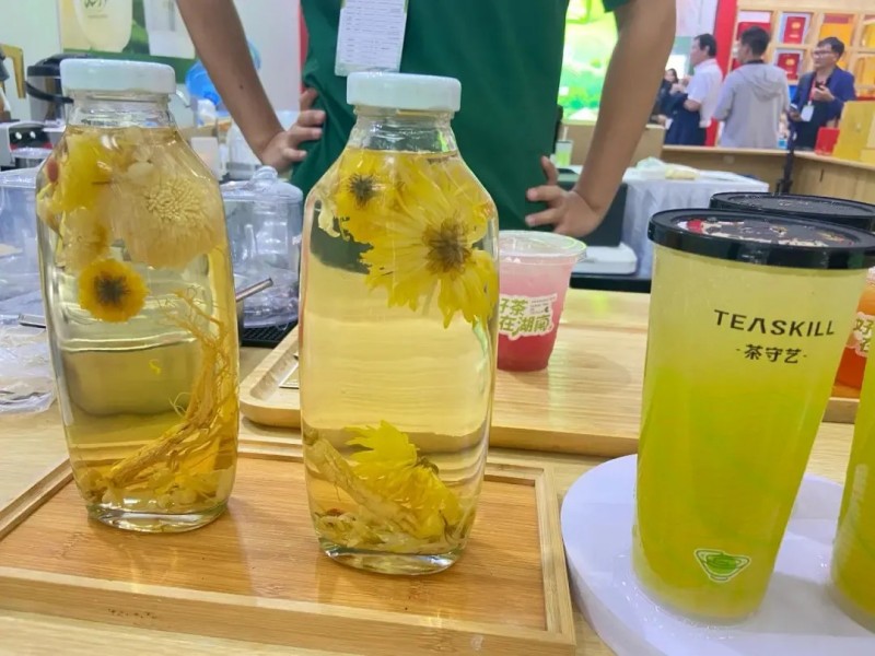 茶守藝的展位前,長(zhǎng)隊(duì)從開展起就沒斷過。穿綠衫的工作人員手速飛快,剛萃好的茶湯注入茶杯:“這是新款‘輕顏養(yǎng)生茶’,加了菊花和人參,喝著清爽還養(yǎng)人?!?br />