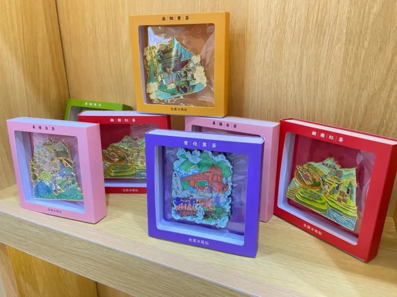 最吸睛的是一套茶文化冰箱貼:立春款印著采茶竹籃,立秋款畫著黑茶渥堆場(chǎng)景,每個(gè)冰箱貼背面都有二維碼,掃碼就能看對(duì)應(yīng)的節(jié)氣茶俗視頻?!斑@是把千兩茶制作技藝這些非遺,變成年輕人愿意帶回家的小物件。”博物館工作人員一邊擺貨架一邊說。這些帶著湖湘茶韻的文創(chuàng),不僅好看,更成了茶文化的“移動(dòng)宣傳員”,不少茶友一買就是一套。