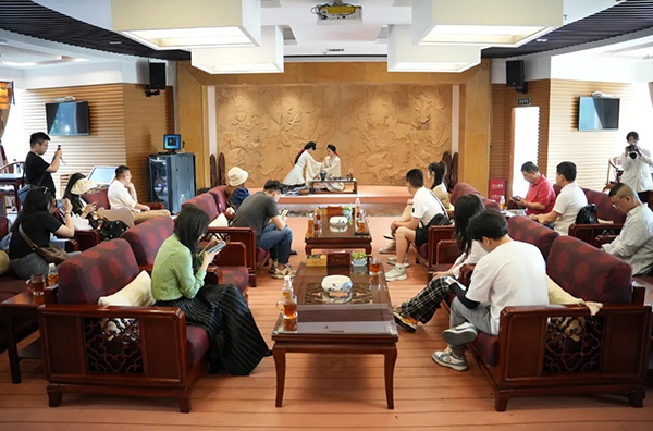 在長(zhǎng)達(dá)2個(gè)小時(shí)的互動(dòng)時(shí)間里,大V達(dá)人為燦爛的湘茶文化所吸引,主動(dòng)當(dāng)起了湘茶宣傳大使。在金花酵庫(kù),他們?cè)谠敿?xì)了解了輕輕茶、熊貓大叔等黑茶提取物產(chǎn)品的生產(chǎn)流程、保健機(jī)理等知識(shí)后,紛紛自覺(jué)為湖南黑茶代言,助力健康中國(guó);在湖南省茶葉博物館,他們通過(guò)茶藝表演、茶園賞春制茶、博物館之旅、唐代煎茶、特色民俗茶飲—擂茶等沉浸式體驗(yàn),無(wú)不贊嘆湘茶文化的獨(dú)特魅力和博大精深,紛紛與工作人員添加交流方式,及時(shí)了解和宣傳湘茶文化;在茶守藝閃鋪,他們?cè)谄凤嫴栾嫼?,紛紛拿起冷泡茶、速溶茶、奶茶等產(chǎn)品與工作人員合影,打卡轉(zhuǎn)發(fā)微博,以實(shí)際行動(dòng)表達(dá)對(duì)產(chǎn)品的喜愛(ài)。