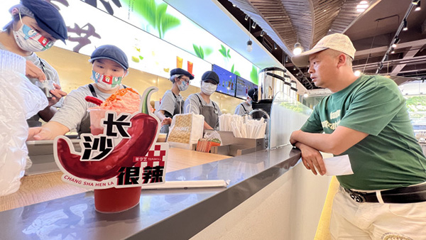 在其茶飲產(chǎn)品區(qū),一杯杯純茶產(chǎn)品在相繼制作中。同樣是用精品茶作為原材料,但不同于常規(guī)開水沖泡的方式,工作人員在用熱水萃出茶味之后,加入冰水固味降溫,成為一杯溫度適宜又茶味純正的茶飲產(chǎn)品。此外,該店同樣以精品茶為原材料,加入湖南優(yōu)質(zhì)牧場出品的鮮奶,或者湖南各地的特色果品,推出了一系列新品種?!白鳛橐患掖蛲ú璁a(chǎn)業(yè)上游產(chǎn)業(yè)鏈的企業(yè),我們有社會責任也看好市場前景,將湖南的好茶、好奶和好果子,通過產(chǎn)品的創(chuàng)新,融入到一杯杯茶飲中,呈現(xiàn)在消費者面前?!?