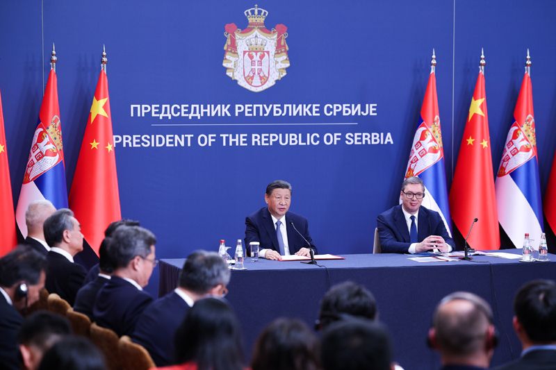 習(xí)近平首先代表中國(guó)政府和中國(guó)人民,向武契奇總統(tǒng)和塞爾維亞政府和兄弟般的塞爾維亞人民致以誠(chéng)摯問(wèn)候。
