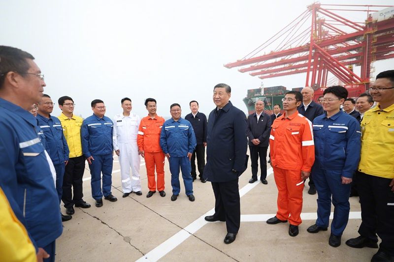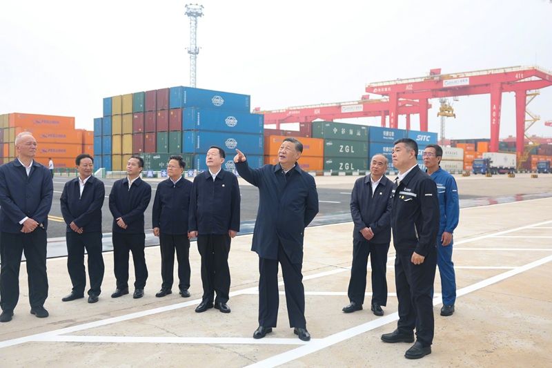 22日下午,習(xí)近平總書(shū)記在山東省日照市考察調(diào)研。他先后來(lái)到日照港和陽(yáng)光海岸綠道,了解當(dāng)?shù)赝七M(jìn)港口智慧化綠色化建設(shè)、擴(kuò)大對(duì)外開(kāi)放和加強(qiáng)海岸線生態(tài)保護(hù)修復(fù)、提高人民生活品質(zhì)等情況。(文字記者:張曉松、朱基釵;攝影記者:鞠鵬、謝環(huán)馳、李濤、殷博古)