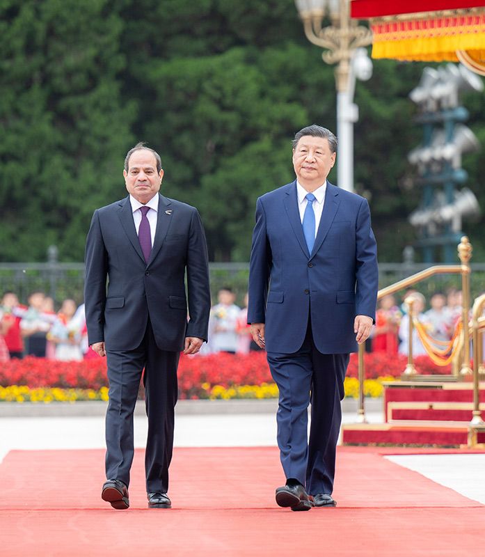 塞西表示,很高興來華進(jìn)行國事訪問并出席中阿合作論壇第十屆部長級會議開幕式。當(dāng)前世界正處于深刻復(fù)雜變化之中,中東地區(qū)深陷危機(jī)。埃方期待同中方進(jìn)一步深化全面戰(zhàn)略伙伴關(guān)系,努力促進(jìn)地區(qū)和平穩(wěn)定。埃方恪守一個(gè)中國原則,堅(jiān)定支持中方在涉臺、涉港、涉藏、人權(quán)等核心利益問題上的立場,堅(jiān)定支持中國實(shí)現(xiàn)國家完全統(tǒng)一。埃方歡迎更多中國企業(yè)赴埃投資合作,助力埃及制造業(yè)發(fā)展和工業(yè)化進(jìn)程。希望以今年“埃中伙伴年”為契機(jī),密切人文交流,加強(qiáng)兩國在信息通訊、人工智能、新能源、糧食安全、金融等方面合作。埃方贊賞習(xí)近平主席提出的系列全球倡議,愿同中方密切多邊協(xié)作,為人類和平進(jìn)步作出積極貢獻(xiàn)。