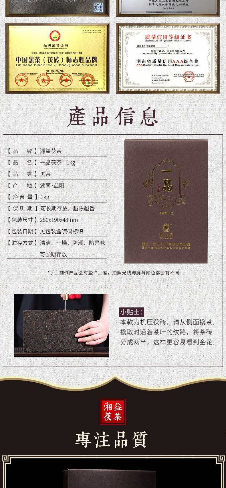 • 湘益獲茶湖南安化黑茶獲磚金花一品獲茶1kg益陽(yáng)茶廠