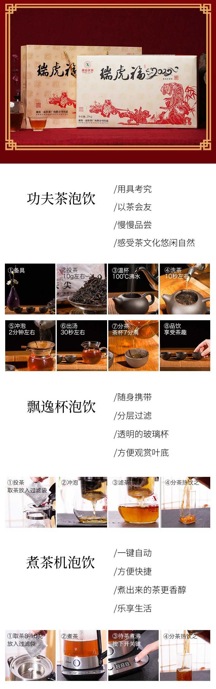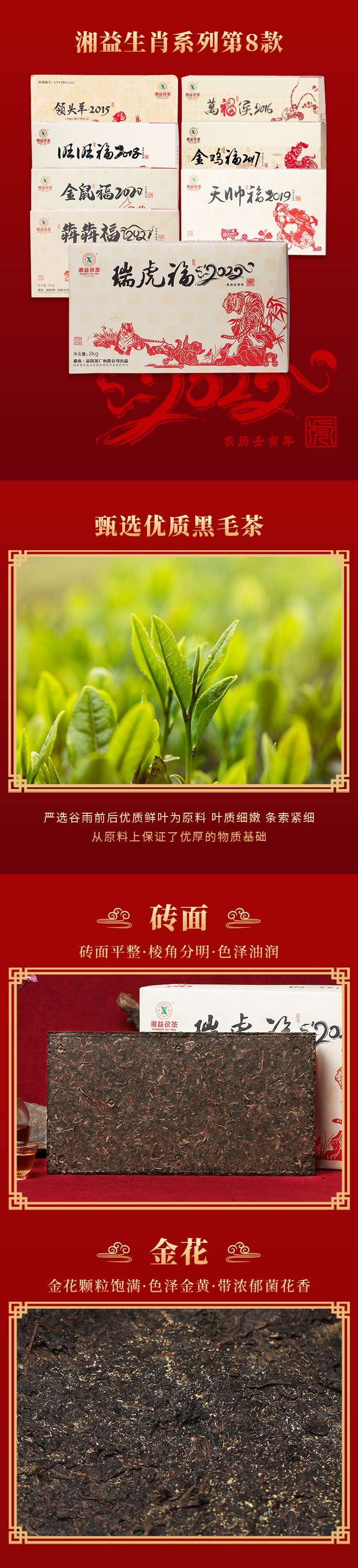 湘益獲茶湖南獲磚茶正宗安化黑茶2022新品虎年生肖茶瑞虎福2kg